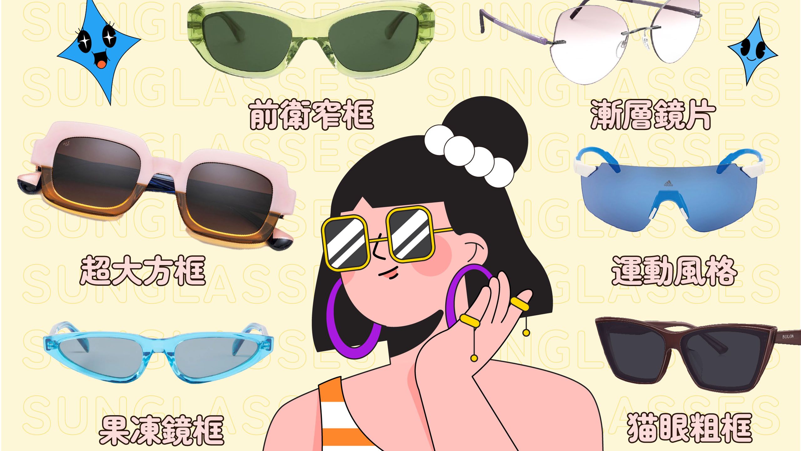 太陽眼鏡不但不是越深越護眼,在美感上也不一定要深才酷炫。近年來受到Y2K復古風潮影響,曾經席捲千禧年代的漸層鏡片也重返潮流焦點,呈現不同氛圍的太陽眼鏡風格。例如夏日的街頭約會,不像戶外運動需要長時間曝曬在陽光下,就很適合挑選淺色墨鏡。清透的漸層色彩在酷暑中看起來不但涼爽,整副眼鏡更有種輕盈、無負擔的感覺。此外,戴上這種眼鏡就像畫了淡淡的彩妝,可說是「素顏神器」,不上妝也能讓氣色變好,深受年輕女性的歡迎。